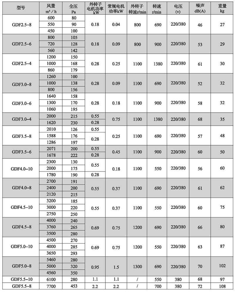 GDF系列風機采用低噪聲風機專用電機與離心式葉輪直聯傳動,方形進出風口,可直接送風,與風管同軸安裝而不需機房,結構緊湊、高度低,兼有管道風機的高流量及箱形風機的低噪聲。具有噪聲低、耗電省、安裝方便、運行穩定等優點,廣泛適用于賓館、醫院、體育館、圖書館等需要低噪聲場合的送排風。