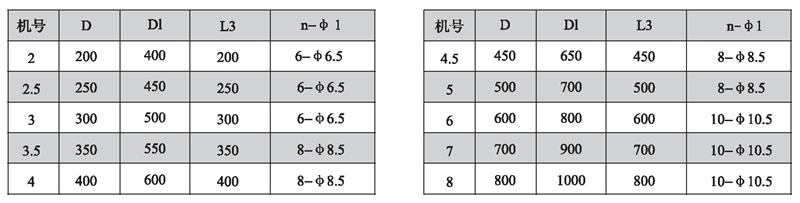2.風機出廠時法蘭一般不打孔n-φ1僅供參考,若要打孔請用戶在訂貨時說明。